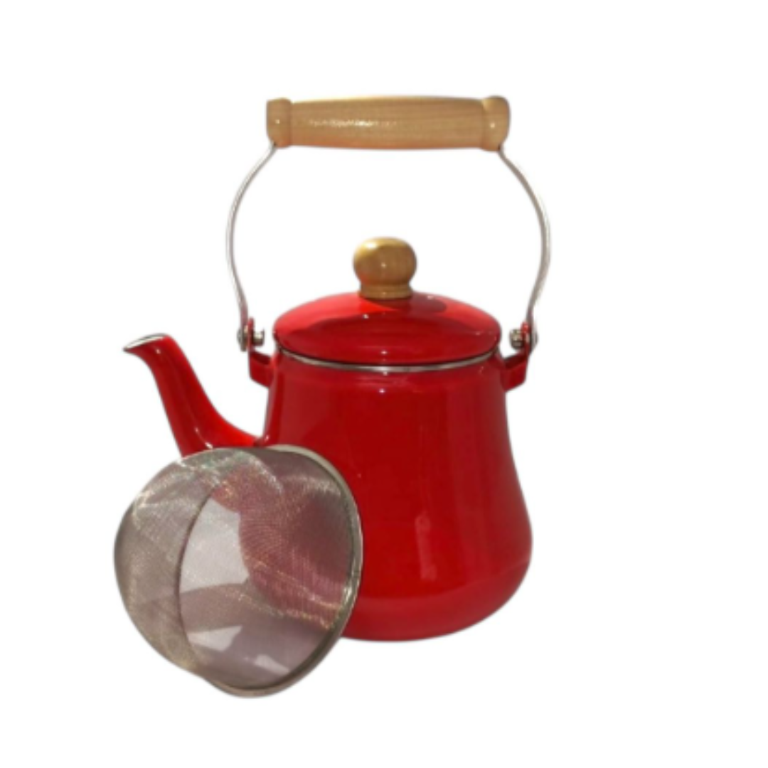 Tetera enlozada con filtro, perfecto para tus infusiones favoritas.